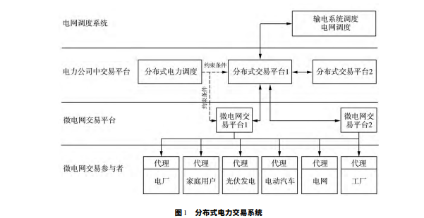 風能和太陽能等可再生能源的快速普及以及每 千瓦時的電池技術成本的快速下降,促使傳統電網 向分布式微電網演變。微電網內的本地點對點 能源交易可在提高供電可靠性的同時降低用電成 本。理論上,微電網內部電能交易的實現可以通 過將相關變量傳遞給中央控制器以集中方式發 生。但是,隨著分布式電源和用戶客戶數量的增 加,這個系統會對電網的可伸縮性產生不利影響,并 且集中控制器也容易形成單點故障風險。這些問 題可通過分布式電力交易平臺加以解決。在電力交 易平臺中個體消費者使用自主控制器進行操作,這些控制器可以在分散的電力市場中進行能源交易。然 而創建這種分散的電力交易平臺在確保電網設備的 物理穩定性和安全性、市場節點的可信任性以及數據 安全方面面臨巨大挑戰性。為此本文提出一種 分布式電力交易平臺。該平臺采用基于分布式賬本 的智能合約以及區塊鏈技術,將為電能交易提供必須 的安全性、可信任以及數據不可修改機制。